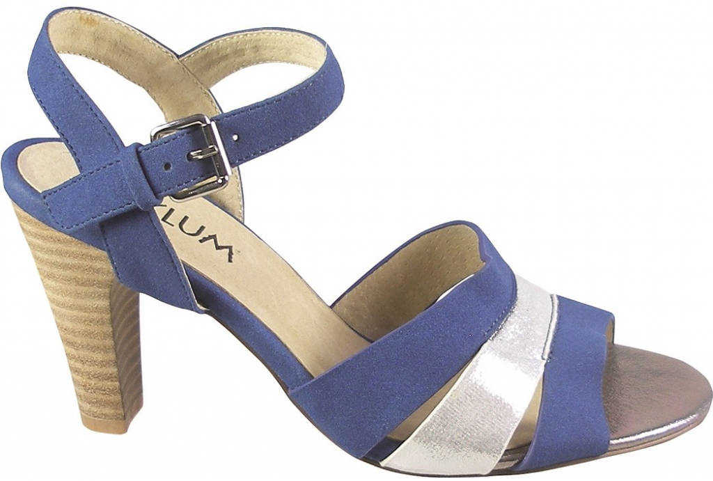 Bílomodré sandálky na podpatku.