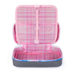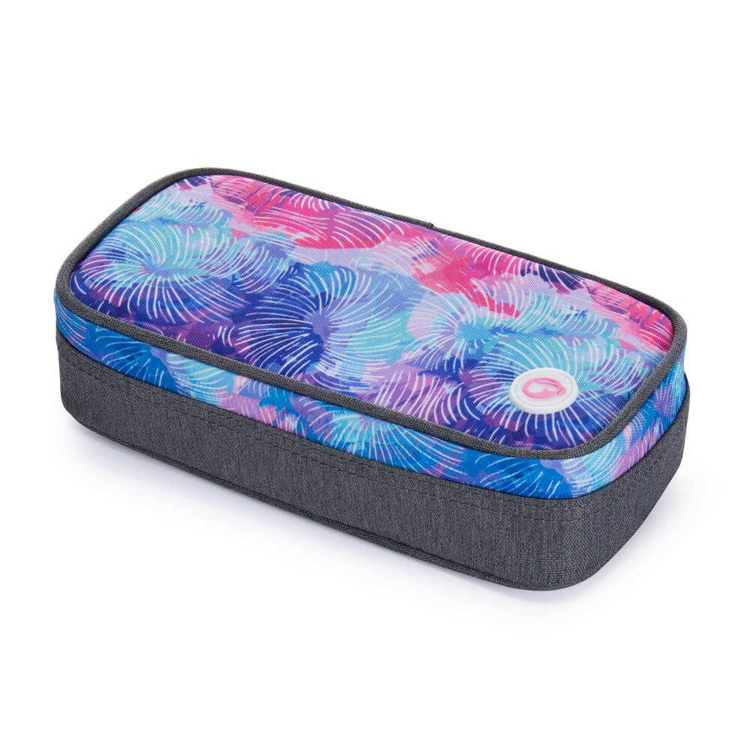 Proč je tento penál pro vaši školačku nejlepší volbou Má jednu velkou komoru a dvojitou přepážku. Na přepážce je 20 gumových úchytů na pera, pastelky i kružítko. Přepážku lze sepnout gumičkou se suchým zipem. Uvnitř pouzdra je jedna zazipovaná kapsa a dvě menší kapsičky na gumu a ořezávátko. Celé pouzdro se zapíná zipem se dvěma taháčky. Zip je kvalitní, neulamují se mu zoubky ani nedrhne v ohybech. Je sladěné k batohu Flick 22 A a najdete ho také v setu Flick 22 A. Proč by sis měla vybrat růžovo-modré pouzdro? Pouzdro si zamiluješ kvůli jeho designu i vymakaným detailům uvnitř – malým kapsičkám na drobnosti a pružným gumovým úchytům na dvojité přepážce. Dovnitř se Ti vejde vše, co potřebuješ na rýsování v geometrii i na to, aby sis mohla barvičkami vyzdobit další školní sešity. Do malých kapsiček uvnitř pouzdra si můžeš kromě gumy, kancelářských sponek a ořezávátka dát také gumičku a sponku, abys je měla po ruce, když si budeš potřebovat před písemkou či tělákem sepnout vlasy.