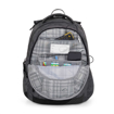 Extra prostorný a pohodlný parťák pro všechny starší kluky a holky nejen do školy. Je vymakaný do nejmenšího detailu: polstrovaná kapsa na notebook, zadní bezpečnostní kapsa na doklady a reflexní prvky. Navíc má měkké a anatomicky tvarované zadní výztuže i popruhy. Proč je batoh Lincoln 24 A pro školačky a školáky správnou volbou: Má samostatnou polstrovanou kapsu na notebook s úhlopříčkou až 16 palců. Do hlavních komor se vejdou knihy a učebnice formátu A4. V horní části je kapsa z jemného materiálu. Ideální skrýš třeba na (sluneční) brýle. V přední kapse je praktický organizér na mobil, tužky, sluchátka a peněženku. Na černou přezku v přední kapse můžete školačce připnout síťovaný sáček. Třeba na peníze nebo sluchátka. Do kapsičky na zip se vejde power banka. Nabíjecí kabel stačí otevřeným rožkem protáhnout k telefonu umístěnému v organizéru. Cennosti lze schovat do zadní kapsy ukryté v měkkém polstrování – hodí se hlavně při cestování v rušných městech. Nastavitelné ramenní popruhy ani zádové plochy s kapsou netlačí na kůži, protože jsou měkce polstrované. Díky nastavitelnému hrudnímu pásu batoh nepadá z ramennou. Anatomické tvarování ulevuje zádům při každodenním cestování. Po stranách je kapsa na láhev s pitím a na druhé straně malá přihrádka na zip. Na přední části je reflex, který svítí ve tmě. Díky polstrovanému dnu je batoh pevný a stabilní i pokud zrovna není na zádech. Zadní komora batohu má sklopné dno, díky kterému se spodní část zpevní a lépe se do něj vkládají učebnice a sešity. Navíc se jim díky tomu nemačkají rožky. Na přenášení nebo pověšení k lavici je v horní části našito měkké pevné ucho. V zadní komoře je všitá jmenovka. Školák si na ni může lihovým či smývatelným fixem napsat jméno a kontakt pro případ, že by batoh ztratil. Ačkoli jsou komory velmi prostorné, samotná konstrukce váží pouze 1 kg. 3 roky záruka. Batoh bude věrným parťákem od druhého stupně základky po celou střední. Sáček v přední komoře, který vidíte na některých fotkách, není součástí batohu. Můžete ho dokoupit v kategorii doplňky. Lincoln 24 A – baťoh přesně pro Tebe Zadní bezpečností kapsa na doklady Ti zajistí bezstarostné cestování nejen v emhádéčku. Pokud nemáš obvykle dost místa na všechno, co si potřebuješ vzít s sebou, tento baťoh se díky prostorným komorám a kapsám výrazně přiblíží Tvým ideálům. Je to totiž s objemem 40 l nejprostornější ze všech baťohů. Pro lepší organizaci věcí si můžeš do komory na klip připnout ještě další doplňky – třeba klíčenku. Baťoh nemusíš nosit jen do školy. Je v něm dostatek místa taky na věci na trénink, na brigádu nebo na výlet. Kdykoli budeš potřebovat noťas nebo tablet s sebou, nemusíš tahat tašku růčo, ale stačí ho prostě dát do polstrované kapsy v baťohu.