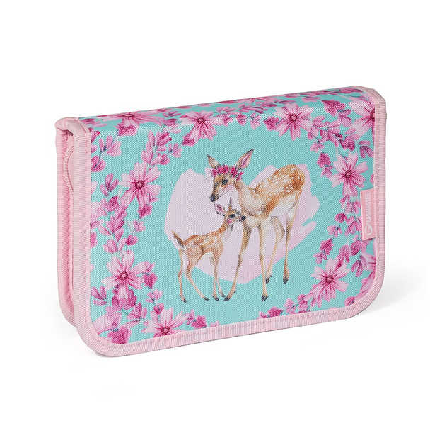 PROČ JE TENTO PENÁL PRO MALOU ŠKOLAČKU SKVĚLOU VOLBOU Na dvou otevíravých chlopních je 32 pružných gumových úchytů na pastelky, pera, fixy, gumu, kružítko a další pomůcky. Pružná očka jsou poctivě přišitá a vyrobená z kvalitní gumy – nevytrhávají se ani nedeformují. Na horní straně chlopně je průhledná kapsa na rozvrh a výukové kartičky. Na druhé chlopni je kapsa na zip. Prázdné pouzdro váží pouze 0,16 kg, takže nebude v tašce zbytečnou zátěží. K pouzdru pošleme malé školačce dárek – barevný rozvrh hodin se samolepkami (vhodný i pro prvňačky, které ještě neumí číst a psát). Pouzdro se zavírá kvalitním zipem s praktickým kovovým taháčkem a látkovým poutkem – nezadrhává se v rozích. Materiál na penálu splňuje normy EU/EN z hlediska nezávadnosti. Součástí pouzdra nejsou školní pomůcky. Penál je sladěný se školním batohem Lumi 23 A, ale hodí se i do dalších tašek. Nejroztomilejší pouzdro do školy. Přesně pro Tebe Růžová, modrá, srnečk s kolouškem a květinky? Přesně takový obrázek Ti zvedne náladu každý školní den. Penál je přehledný. Do gumových úchytek si hezky uspořádáš pera, pastelky i barevné fixky. Nezapomeň tužky před vyskládáním do pouzdra ořezat, ať nedostaneš černý puntík. Kvalitní zip se Ti nebude rozjíždět, ani se z něj nebudou vylamovat zoubky. Na zipový taháček si můžeš pověsit oblíbený přívěšek pro štěstí. Nechceš rovnou celou školní výbavu? K pouzdru máme i batoh. A nebo penál najdeš v malém či velkém setu.