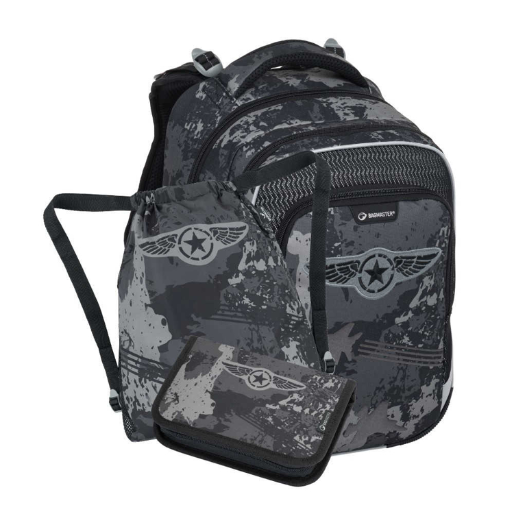Tříkomorový školní batoh pro malé hrdiny od první do třetí třídy. Lehký, aby zbytečně nezatěžoval dětská záda, ale zároveň je dostatečně prostorný na vše potřebné. Praktický organizér a velké kapsy poskytnou přehledné úložiště pro všechny školní pomůcky. Bezpečné cesty do školy zaručují reflexní prvky rozmístěné ze všech stran. Set obsahuje sladěný penál a sáček. VOJENSKÝ SET OBSAHUJE tříkomorový super lehký batoh, jednokomorový penál se dvěma chlopněmi, školní látkový vak na přezůvky či úbor. BEZPEČNÝ BATOH LUMI PRO MALÉ VOJÁKY Je velmi lehký – váží jenom 0,94 kg. Není příliš široký, aby zbytečně netížil při chůzi. Například mezi lavicemi nebo v úzké uličce autobusu. Ideální pro školáky od 1. do 3. třídy. Má tři prostorné komory. Do hlavní se vejdou velké školní desky i učebnice a sešity formátu A4. V hlavní komoře je kompresní kapsa s elastickými postranními pásy na desky A4 a na velké učebnice. Pomáhá přitáhnout a udržet těžké pomůcky co nejvíce u zad, díky tomu má školák či školačka těžiště blízko páteře a při chůzi se nehrbí. Prostřední kapsa je připravená na penál a svaičnu. V přední kapse je praktický organizér na mobil, tužky, sluchátka a peněženku. Na černou přezku v přední kapse můžete školačce připnout síťovaný sáček. Třeba na peníze nebo sluchátka. Do kapsičky na zip se vejde power banka. Nabíjecí kabel stačí otevřeným rožkem protáhnout k telefonu umístěnému v organizéru. Na bočních stranách jsou kapsy vhodné na láhev s pitím nebo třeba deštník. Ergonomicky tvarovaná záda a prodyšný bederní pás podporují správné držení těla. Flexibilní hrudní pás pomáhá stabilitě batohu na zádech. Ramenní popruhy díky němu nesjíždí z ramenou. Ramenní popruhy i zádový systém jsou měkce polstrované. Popruhy se nastavují pomocí horních a dolních plastových spon. Je třeba upravovat délku podle toho, jak školačka roste. Konce popruhů jsou magnetické. Aby neblincaly, jednoduše je magnetem připnete nad plastovou sponu. Součástí batohu je designový přívěsek. 3 roky záruka. Síťovaný sáček není součástí produktu. Můžete ho přihodit do nákupního košíku. Najdete ho v kategorii doplňky.
