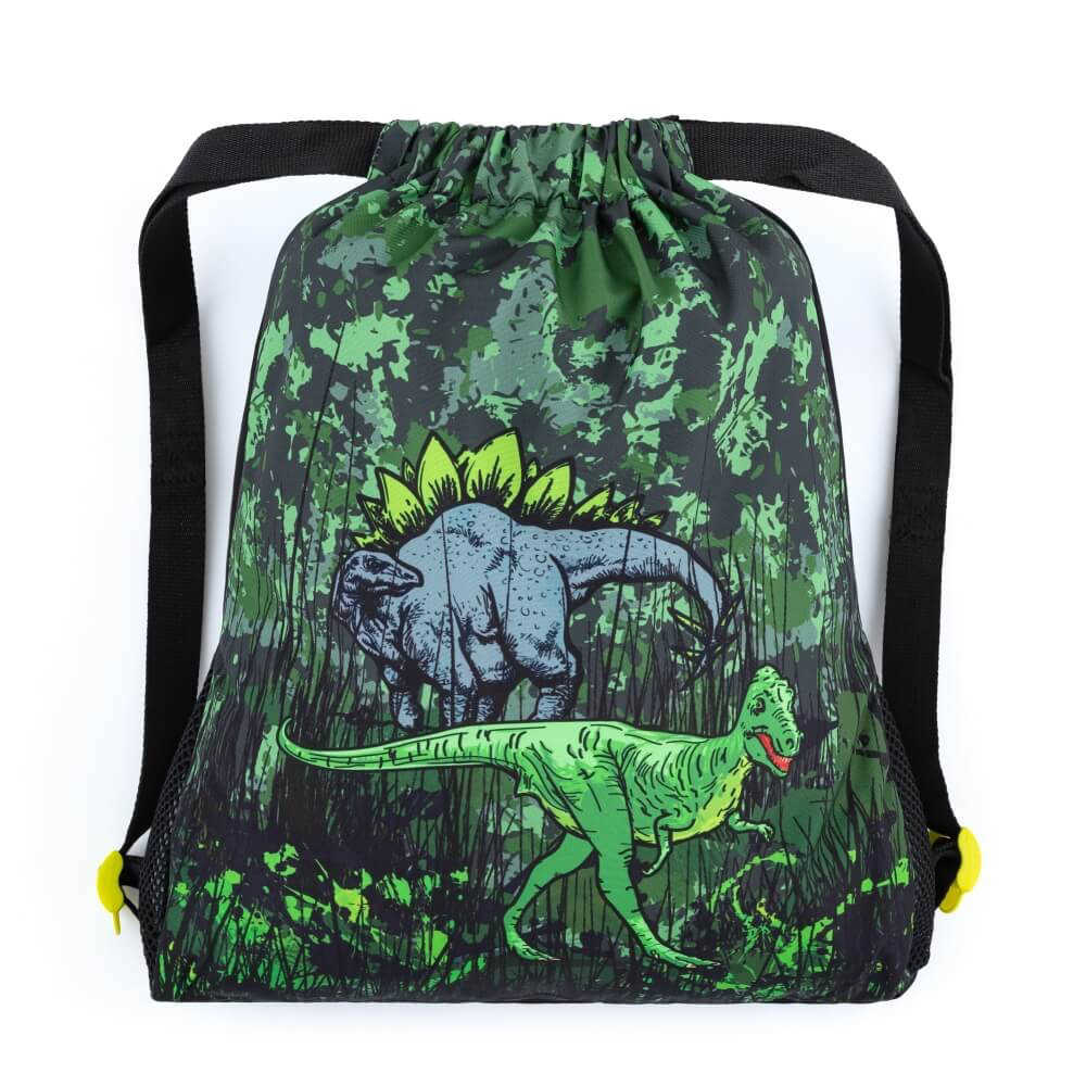 Sportovní vak na záda Látkový sáček je prostorný – vejdou se do něj papuče, oblečení a přezůvky na tělocvik či věci do odpoledního kroužku. Uzavírá se jednoduše stažením popruhů. Pevné a široké popruhy neřežou na ramenou. Pomocí přezek se dá nastavit délku popruhů na postavu školáka. Ve spodní části sáčku je síťované odvětrání. To se hodí hlavně když školák do vaku hodí zpocený úbor z těláku či fotbalu. Díky reflexním prvkům vak svítí ve tmě. Tyto prvky splňují normy EU. Látkový sáček si školák může přehodit k batohu přes jedno rameno nebo jej nosit na obou ramenou. Proč se Ti bude do školy hodit k batohu i látkový vak? Na tělocvik nebo kroužek nemusíš nosit celou školní tašku. Vše potřebné si dáš do vaku, nasadíš na záda a jdeš. Vak využiješ i mimo školu – třeba na fotbalový trénink, skautí výlet nebo na prázdniny u babičky. Obrázek dinosaurů Ti budou spolužáci závidět.
