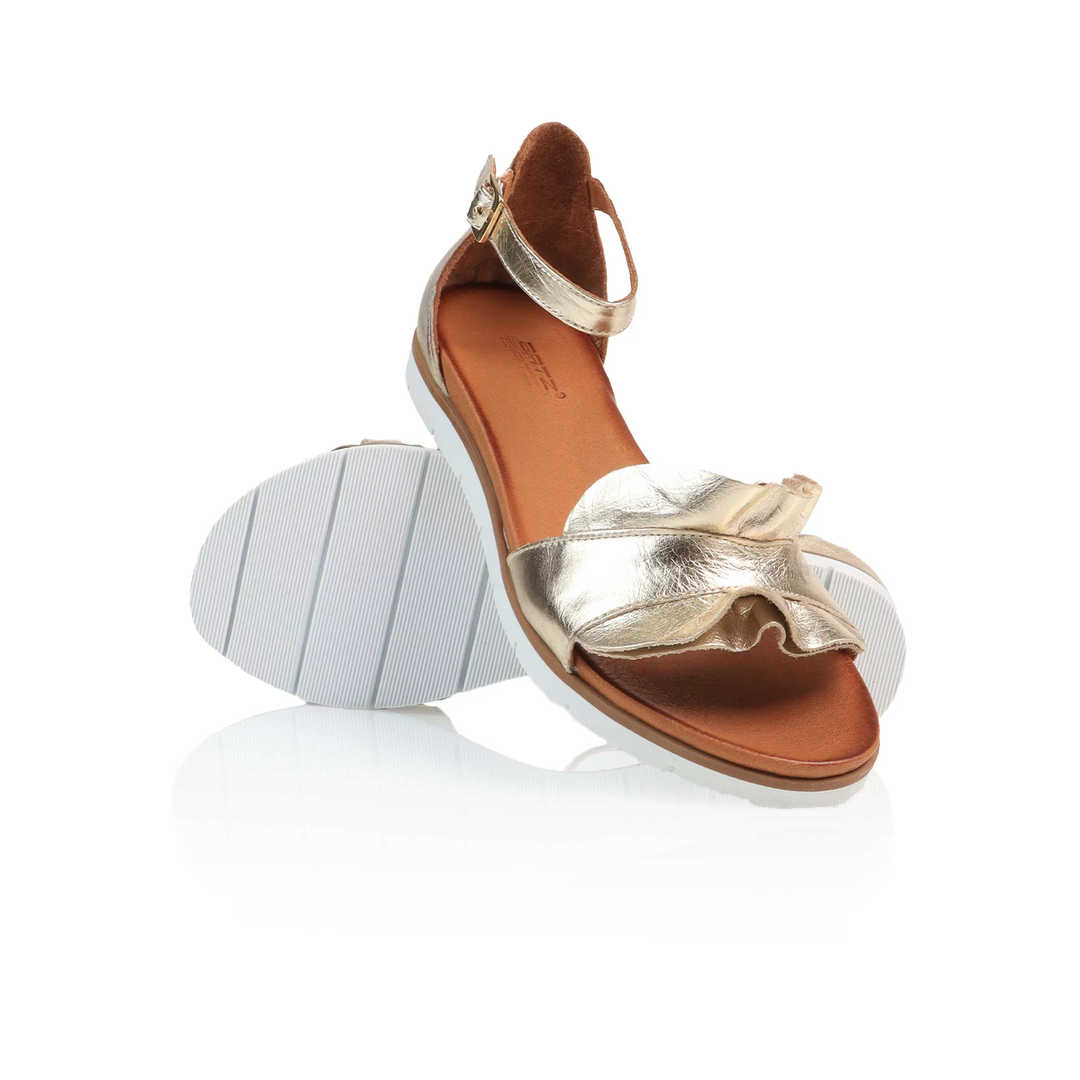 Dámské sandály Batz. V těchto elegantních a sofistikovaných zlatých sandálech budete zářit. Jsou pohodlné a stylové, mají rafinovaný přední pásek a nastavitelný kotníkový pásek.