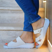 Anatomický design zajišťuje pohodu vašich nohou po celý den a nastavitelný pásek na suchý zip vám pomůže přizpůsobit pantofle vašim vlastním potřebám. Super pohodlná obuv s vyměnitelnými, vyjímatelnými vložkami, která splňuje moderní očekávání. Jemný, ženský, pololakový model, který je ozvláštněn elegantním vzorem na horních ramínkách. Obuv je vyrobena z vysoce kvalitní kůže, která je pohodlná a skutečně ženská.