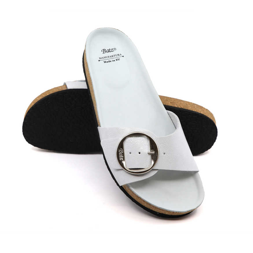 Dámské pantofle Batz. Brilantní, třpytivé pantofle s korkovou podrážkou, která přináší vzrušující jiskru do každodenního léta. Elegantní a lehké, módní a nadčasové. Navíc jsou extra pohodlné díky polštářkům na patě z paměťové pěny a anatomicky navržené struktuře podrážky z pravého korku.