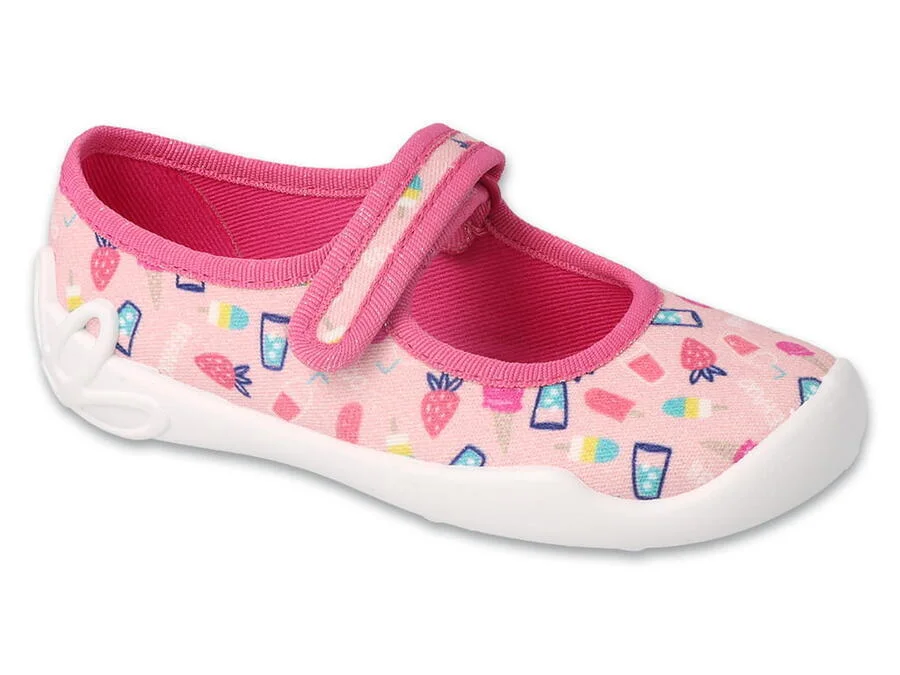 Lehké a pohodlné přezůvky určené pro samostatné předškoláky. Holčička si je dokáže nasadit i sundat sama bez pomoci maminky a tatínka. Díky nápaditým hravým vzorům se hodí jak k šatům, tak ke sportovním šortkám. Balerínky jsou vyrobeny z prodyšných tkanin. Mají prodyšnou podrážku. To vše znamená, že se v nich nohy nadměrně nepotí, což přispívá ke zvýšenému pohodlí dítěte. Uvnitř byla použita měkká vložka Soft-B System, díky které jsou boty Befado Blanca velmi pohodlné a starají se o nožičku po celou dobu pobytu dítěte ve školce. • Bačkůrky Befado Blanca odpovídají veškerým nárokům na zdravou obuv • Vyztužená zadní část boty se postará o skvělou stabilitu paty • Nízký klínový podpatek tlumí nárazy v oblasti paty • Měkká a elastická stélka • Dostatek místa pro prsty - široké špičky bot dopřejí prstům volný pohyb • Lehká a pružná podrážka působí proti únavě nožiček • Vysoce prodyšný materiál a odvětraná podrážka zajišťují odvod nadměrné vlhkosti • Zapínání na suchý zip, díky kterému se bota přizpůsobí výšce nártu a tvaru chodidla • Vhodné na celodenní nošení doma i do školky • Materiálové složení – horní část vysoce kvalitní textilie, spodní část (podešev): vysokojakostní materiál PVC • Technologie: Dýchající podešev, měkká a elastická stélka, Soft-B systém, Systém ochrany prstů Délka vnitřní stélky: • velikost 25 - 16 cm • velikost 26 - 16,6 cm • velikost 27 - 17,2 cm • velikost 28 - 17,9 cm • velikost 29 - 18,5 cm • velikost 30 - 19,1 cm Délka vnitřní stélky představuje rozměr vložky uvnitř obuvi. Pro pohodlné užívání doporučujeme při výběru přidat 5-8 mm k naměřené délce chodidla a následně zvolit správnou velikost obuvi