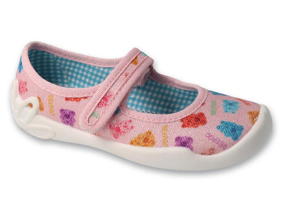 Lehké a pohodlné přezůvky určené pro samostatné předškoláky. Holčička si je dokáže nasadit i sundat sama bez pomoci maminky a tatínka. Díky nápaditým hravým vzorům se hodí jak k šatům, tak ke sportovním šortkám. Balerínky jsou vyrobeny z prodyšných tkanin. Mají prodyšnou podrážku. To vše znamená, že se v nich nohy nadměrně nepotí, což přispívá ke zvýšenému pohodlí dítěte. Uvnitř byla použita měkká vložka Soft-B System, díky které jsou boty Befado Blanca velmi pohodlné a starají se o nožičku po celou dobu pobytu dítěte ve školce. • Bačkůrky Befado Blanca odpovídají veškerým nárokům na zdravou obuv • Vyztužená zadní část boty se postará o skvělou stabilitu paty • Nízký klínový podpatek tlumí nárazy v oblasti paty • Měkká a elastická stélka • Dostatek místa pro prsty - široké špičky bot dopřejí prstům volný pohyb • Lehká a pružná podrážka působí proti únavě nožiček • Vysoce prodyšný materiál a odvětraná podrážka zajišťují odvod nadměrné vlhkosti • Zapínání na suchý zip, díky kterému se bota přizpůsobí výšce nártu a tvaru chodidla • Vhodné na celodenní nošení doma i do školky • Materiálové složení – horní část vysoce kvalitní textilie, spodní část (podešev): vysokojakostní materiál PVC • Technologie: Dýchající podešev, měkká a elastická stélka, Soft-B systém, Systém ochrany prstů Délka vnitřní stélky: • velikost 25 - 16 cm • velikost 26 - 16,6 cm • velikost 27 - 17,2 cm • velikost 28 - 17,9 cm • velikost 29 - 18,5 cm • velikost 30 - 19,1 cm Délka vnitřní stélky představuje rozměr vložky uvnitř obuvi. Pro pohodlné užívání doporučujeme při výběru přidat 5-8 mm k naměřené délce chodidla a následně zvolit správnou velikost obuvi