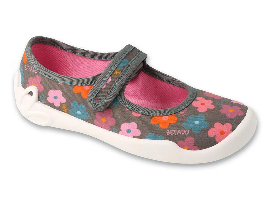 BEFADO 114Y552 dívčí balerínky šedé kytičky