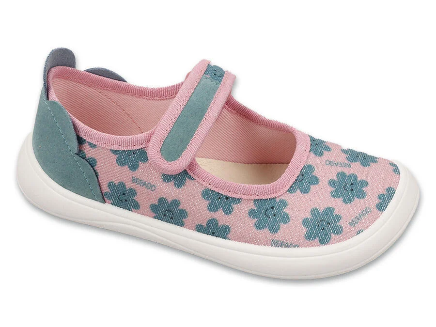 Anatomická podrážka, kožená vložka, voňavá podrážka Dívčí barefoo balerínky Befado s voňavou podrážkou - ucítíte sladkou vůni hned po otevření krabice Tyto dětské boty Barefoot jsou navrženy s ohledem na správný vývoj chodidel. Pružná, tenká podrážka umožňuje vašemu dítěti přirozeně cítit zem, zatímco vícesměrná flexibilita boty umožňuje snadné ohýbání a kroucení a kopírování každého pohybu chodidla. Jemný design s nulovým poklesem podporuje zdravé držení těla a správné zarovnání páteře. Široký prostor pro prsty umožňuje volnost pohybu prstů, zabraňuje vzniku tlakových bodů a podporuje přirozené tvarování chodidla. Mírně zpevněná pata pomáhá udržovat správné postavení chodidla. Neomezuje pohyb, ale dává dítěti jistý krok a zvyšuje bezpečnost. Boty jsou lehké a měkké , takže nezatěžují malé nožičky. Kožená stélka zajišťuje volné proudění vzduchu, pohodlí a hygienu i při intenzivním nošení. Dalším překvapením je voňavá žvýkačková podrážka – sladkou vůni ucítíte hned po otevření krabice, což dítěti ještě více zpříjemní první setkání s botami. Podrážka M je nejuniverzálnějším modelem v kolekci Befado Barefoot – je navržena pro chodidla standardní šířky a různých tvarů, dokonale se přizpůsobí egyptským, řeckým a římským chodidlům a zajišťuje přirozené pohodlí. KLÍČOVÉ VLASTNOSTI: - flexibilní, tenká podrážka - umožňuje volný pocit z podlahy při chůzi, což se promítá do lepší stimulace svalů a nervového systému, - plochá podrážka (nulový spád) - stejná výška prstů a paty pomáhá udržovat správné držení těla, - široká špička - poskytuje dostatek prostoru pro přirozené umístění prstů, - mírně zpevněná patní část - pomáhá udržovat správnou polohu chodidla, - lehká konstrukce - bosá obuv nezatěžuje chodidla, což zvyšuje volnost pohybu a zabraňuje vzniku zranění a deformací, - měkké materiály - zvyšují pohodlí při používání, - kožená stélka - zajišťuje svěžest a pohodlí při nošení, - parfemovaná podrážka s vůní žvýkačky - malý detail, který si děti zamilují od první chvíle.