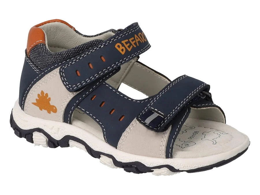 Skvěle padnoucí dětské sandálky Befado DINO - jaké jsou jejich přednosti? Sandály se vyznačují koženou, hygienickou podšívkou s antialergickými vlastnostmi, zvyšující komfort používání. Svršek je vyroben z kvalitní, pružné, měkké a snadno udržovatelné imitace kůže. Funkční zapínání na suchý zip navíc umožňuje přizpůsobení sandálků dětské noze. Měkký vnitřek boty šetrný k pokožce zabraňuje oděrkám. Mírně vyztužená a zvýšená pata zaručuje správnou stabilizaci celého těla dítěte. Uzavřená přední část boty chrání malé prsty dítěte a spolu s podrážkou s vlastností tlumení nárazů chodidla zajišťují sandálky Befado vysoký komfort při nošení. Rodiče i děti ocení moderní a módní vzhled.