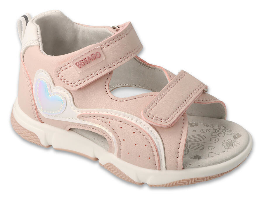 Kožená stélka a boční podšívka Skvěle padnoucí dětské sandálky Befado SWEETHEART - jaké jsou jejich přednosti? Sandály se vyznačují koženou, hygienickou podšívkou s antialergickými vlastnostmi, zvyšující komfort používání. Svršek je vyroben z kvalitní, pružné, měkké a snadno udržovatelné imitace kůže. Funkční zapínání na suchý zip navíc umožňuje přizpůsobení sandálků dětské noze. Měkký vnitřek boty šetrný k pokožce zabraňuje oděrkám. Mírně vyztužená a zvýšená pata zaručuje správnou stabilizaci celého těla dítěte. Uzavřená přední část boty chrání malé prsty dítěte a spolu s podrážkou s vlastností tlumení nárazů chodidla zajišťují sandálky Befado vysoký komfort při nošení. Rodiče i děti ocení moderní a módní vzhled.