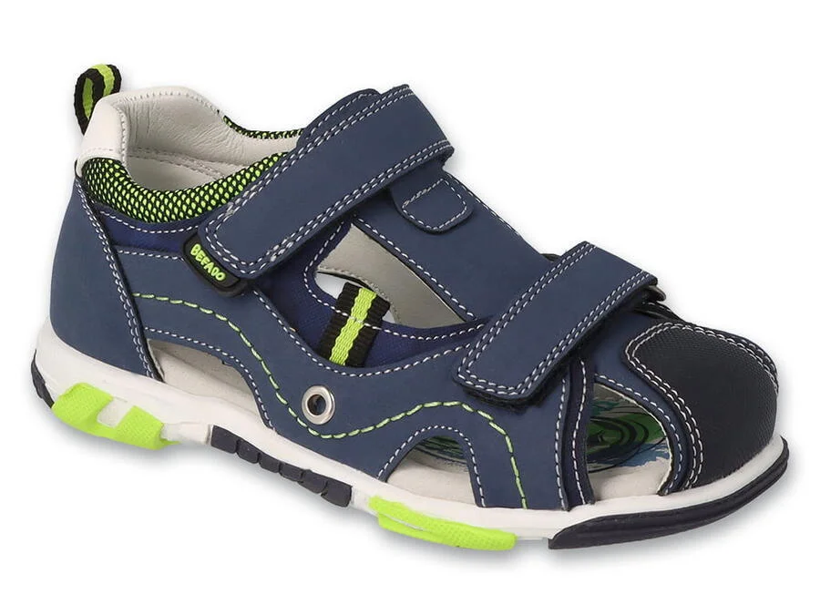 Skvěle padnoucí dětské sandálky Befado WAVE - jaké jsou jejich přednosti? Sandály se vyznačují koženou, hygienickou podšívkou s antialergickými vlastnostmi, zvyšující komfort používání. Svršek je vyroben z kvalitní, pružné, měkké a snadno udržovatelné imitace kůže. Funkční zapínání na suchý zip navíc umožňuje přizpůsobení sandálků dětské noze. Měkký vnitřek boty šetrný k pokožce zabraňuje oděrkám. Mírně vyztužená a zvýšená pata zaručuje správnou stabilizaci celého těla dítěte. Uzavřená přední část boty chrání malé prsty dítěte a spolu s podrážkou s vlastností tlumení nárazů chodidla zajišťují sandálky Befado vysoký komfort při nošení. Rodiče i děti ocení moderní a módní vzhled.