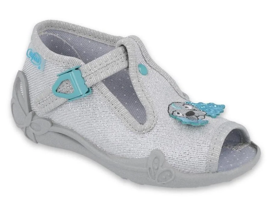 BEFADO 213P121 dívčí bačkorky stříbrné pejsek