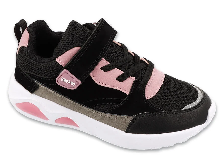 Ultralehké Dětská sportovní obuv SKIP BEFADO Dětská sportovní obuv Befado je ultralehká a pohodlná obuv určená pro každodenní aktivity dětí. Je ideální na hraní, procházky a další venkovní aktivity. Sportovní design a moderní barvy dodávají botám atraktivní vzhled, který doplňuje dětský styl. Konstrukce boty zajišťuje bezpečné uchycení díky zapínání na suchý zip a klasickým tkaničkám, což usnadňuje nazouvání a nastavení. Podešev je navržena tak, aby tlumila došlap a izolovala nohu od země, čímž zvyšuje pohodlí při chůzi a běhu. Prvky zabudované do podešve dodávají botě moderní charakter a zdůrazňují sportovní styl modelu.