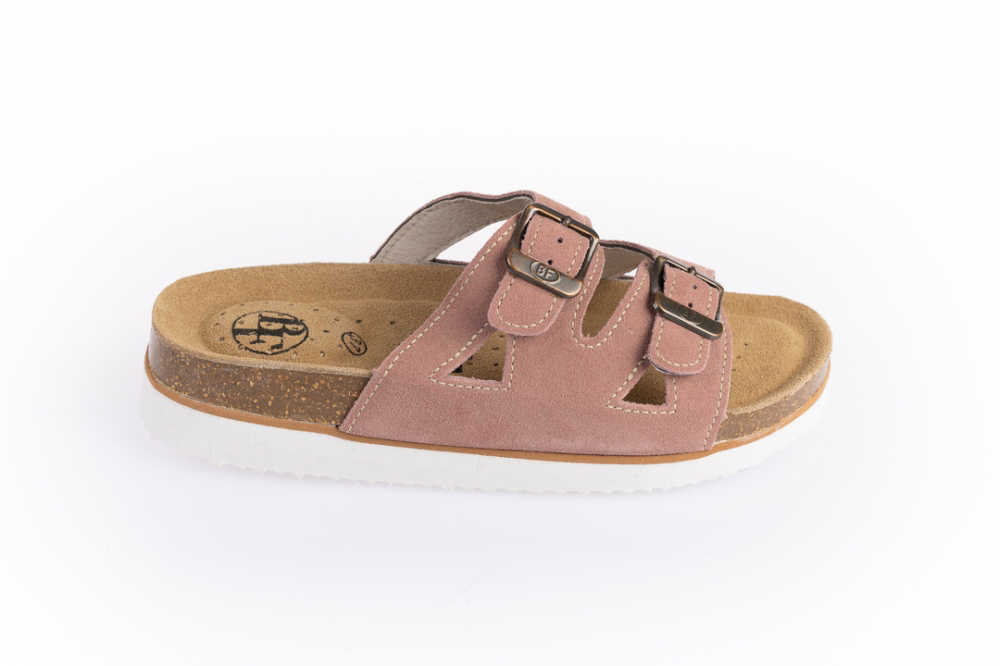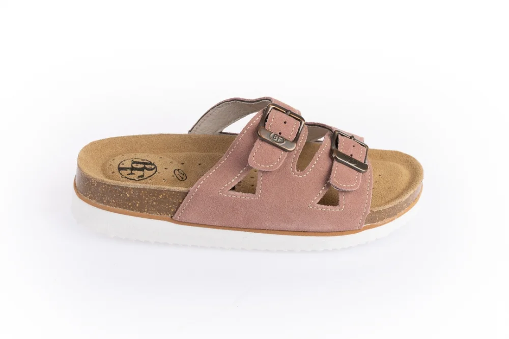Kožené pantofle v lososové barvě s anatomicky tvarovanou prodyšnou stélkou s klenbou.
