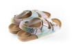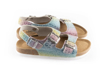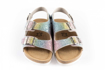 Kožené pantofle v duhově třpytkaté barvě s páskem kolem paty s anatomicko–prodyšnou stélkou s klenbou.