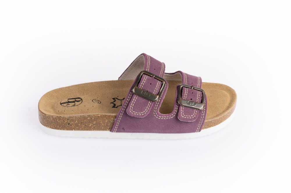 Kožené pantofle ve fialové barvě s anatomicky tvarovanou prodyšnou stélkou s klenbou.