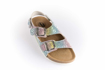 Kožené pantofle v duhové třpytkaté barvě s páskem kolem paty s anatomicky tvarovanou prodyšnou stélkou s klenbou.