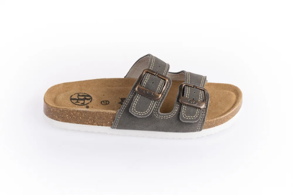 Kožené pantofle v šedé barvě s anatomicky tvarovanou prodyšnou stélkou s klenbou.