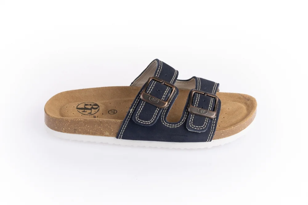 Kožené pantofle v modré barvě s anatomicky tvarovanou prodyšnou stélkou s klenbou.