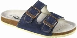 Pohodlné pantofle v modré barvě z pravé kůže a anatomicky tvarovanou stélkou pro celodenní nošení.