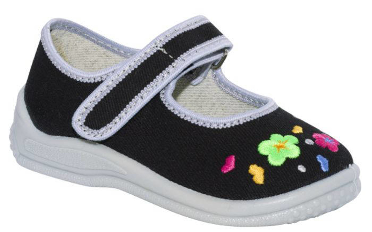 Dětská textilní obuv bighorn EVA v černé barvě se zapínáním na suchý zip. Boty jsou ozdobeny barevnými výšivkami. Materiál je vysoce kvalitní bavlna. Lehká pružná podešev vyrobená z PVC. Stélka je vyrobena z přírodní kůže a pružné pěny s aktivním uhlím. Kůže absorbuje přebytečnou vlhkost a aktivní uhlí nepříjemné pachy, což chodidlu dává pocit svěžesti. Pata obuvi je vyztužena. Bota je velice pohodlná a lehká. Vyrobeno v EU.