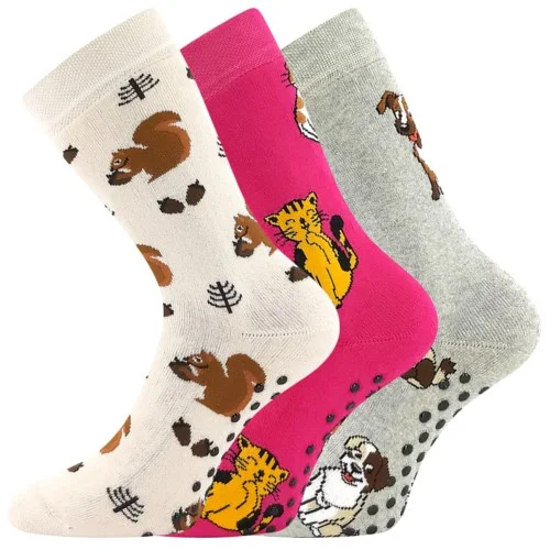 BOMA Ponožky dětské froté SIBIŘ 08 ABS s obrázky DÍVČÍ (3 páry)