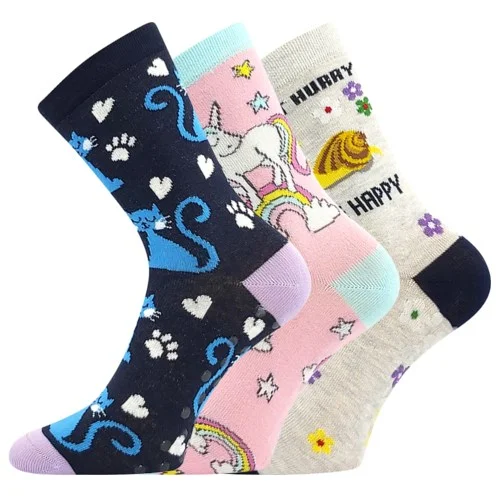 BOMA Ponožky dětské FILIP 07 ABS obrázkové MIX DÍVČÍ (3 páry)