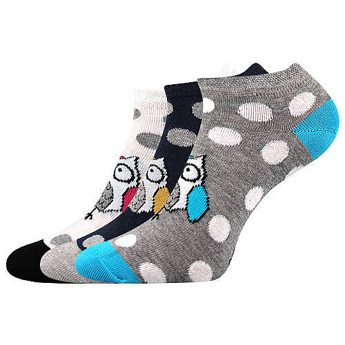BOMA Ponožky dámské nízké PIKI 62 letní puntíkované SE SOVIČKAMI (3 páry)