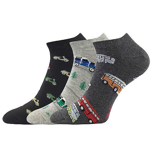 Pánské nízké ponožky Boma® PIKI 81 jsou tenké ponožky ve vtipném designu z přírodní bavlny doplněné o pružný elastan. Ponožky se příjemně nosí a dobře sedí na noze. Výhodné balení obsahuje 3 páry ponožek s obrázky skútru vespa, aut a autíček v tmavých barvách.