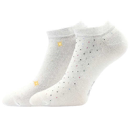 Dámské krátké ponožky Boma® PIKI 82 jsou letní ponožky z přírodní bavlny doplněné o pružný elastan. Jsou příjemné na nošení a výborně sedí na noze. Výhodné balení elegantních slabých ponožek tvoří 1 pár s decentními lurexovými a 1 pár s barevnými puntíky.