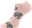 Dámské krátké ponožky Boma® PIKI 83 jsou letní ponožky z přírodní bavlny doplněné o pružný elastan. Jsou příjemné na nošení a výborně sedí na noze. Výhodné balení slabých barevných ponožek s obrázky lam, slonů a lištiček obsahuje 3 páry.