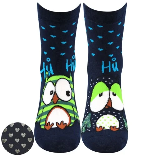 BOMA Ponožky dámské celofroté PRUHANA ABS 12 se sovičkami TMAVĚ MODRÉ (3 páry)