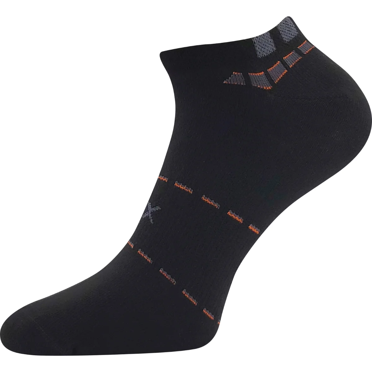 Pánské krátké slabé ponožky VoXX® REX 16 jsou sportovní ponožky, které se hodí jak na celodenní nošení, tak i na letní indoorové a outdoorové aktivity. Tenké ponožky s vyšším podílem bavlny pro dobrý odvod vlhkosti mají navíc prodyšnou zónu na nártu a jemný nestahující lem. Aby se v obuvi nepřetáčely, okolo nártu mají elastickou zónu, držící ponožky na svém místě. Ponožky jsou dostupné v teplotní třídě A, vhodné do rozmezí teplot od +10°C do +35°C.