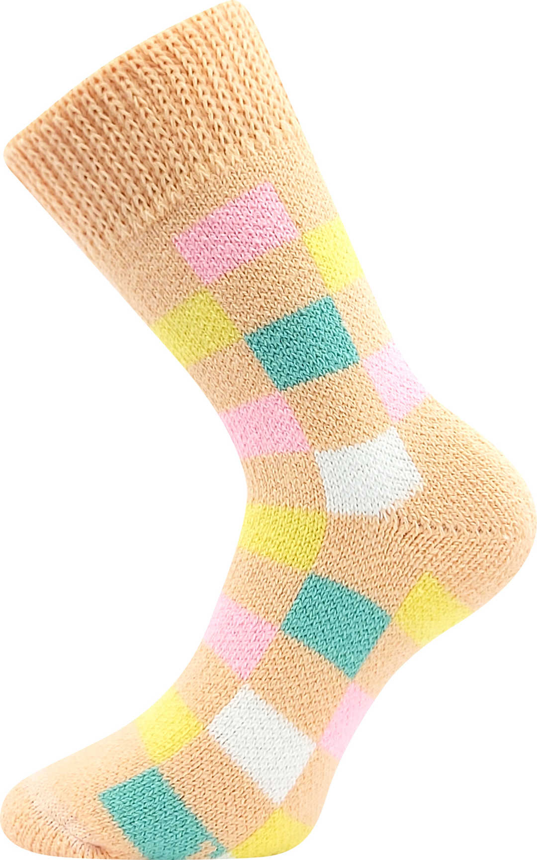 BOMA Ponožky silné domácí SPACÍ kostkované MERUŇKOVÉ