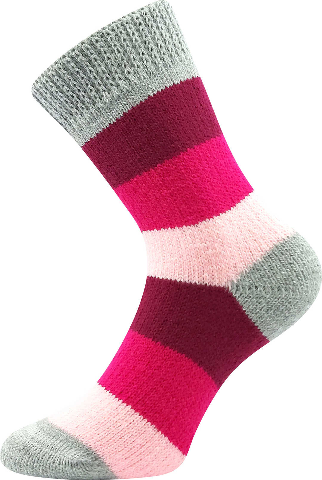 BOMA Ponožky silné domácí SPACÍ pruhované RŮŽOVÉ