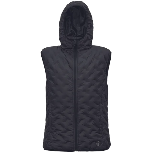 • zimní péřová vesta se zapínáním na zip a kapucí • 2 hluboké postranní kapsy na zip • elastický pas