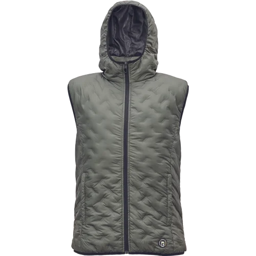 • zimní péřová vesta se zapínáním na zip a kapucí • 2 hluboké postranní kapsy na zip • elastický pas