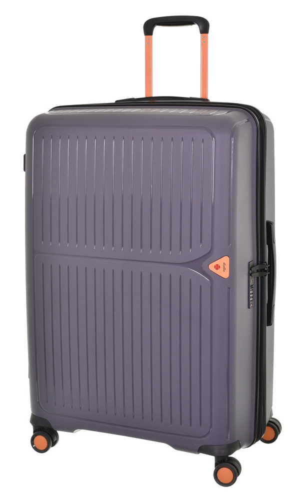 Moderní plastový kufr 75 cm italské značky Dielle v antracitové barvě s prolisy proužků.