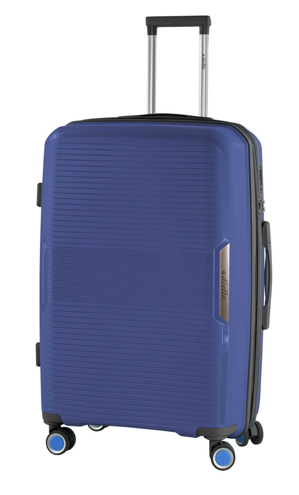 Moderní ultralehký plastový kufr 76 cm italské značky Dielle v modré barvě s prolisy proužků.