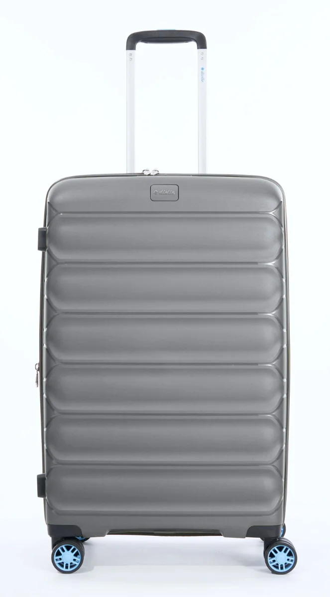 Moderní ultralehký plastový kufr 66 cm italské značky Dielle v antracitové barvě s prolisy proužků.