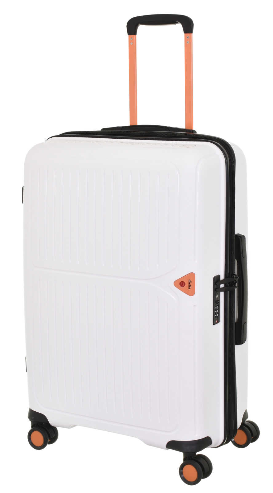 Moderní plastový kufr 66 cm italské značky Dielle v bílé barvě s prolisy proužků.