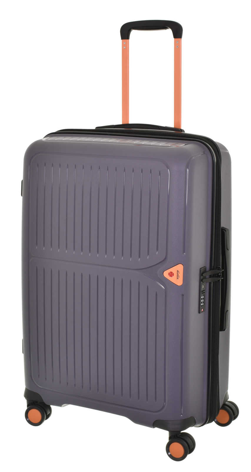 Moderní plastový kufr 66 cm italské značky Dielle v antracitové barvě s prolisy proužků.