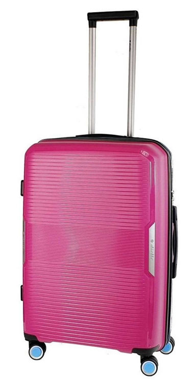 Moderní ultralehký plastový kufr 67 cm italské značky Dielle ve fuchsiové barvě s prolisy proužků.