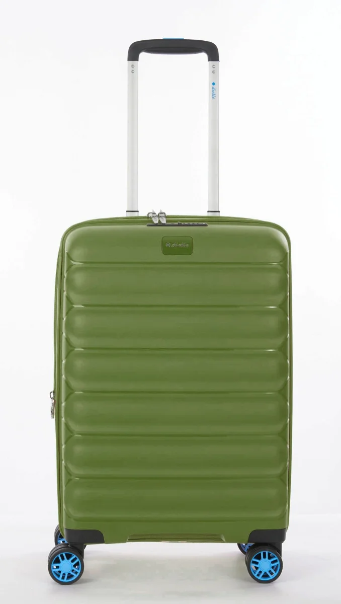 Moderní ultralehký plastový kufr 55 cm italské značky Dielle v zelené barvě s prolisy proužků.