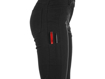 Dámské elastické kalhoty, pas s poutky na opasek, 2 přední klínové kapsy, 2 nakládané kapsy zezadu, menší boční kapsy na tužky.