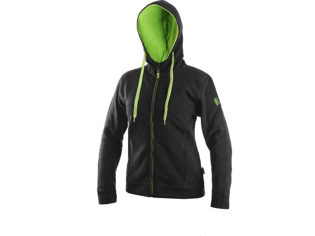 Popis: dámská mikina na zip s kapucí, celopropínací, dvě postranní kapsy na zip, rukávy zakončeny manžetou, finální silikonová úprava materiálu, která zajišťuje vyšší měkkost, pružnost, rozměrovou stálost a omezuje žmolkovatění.