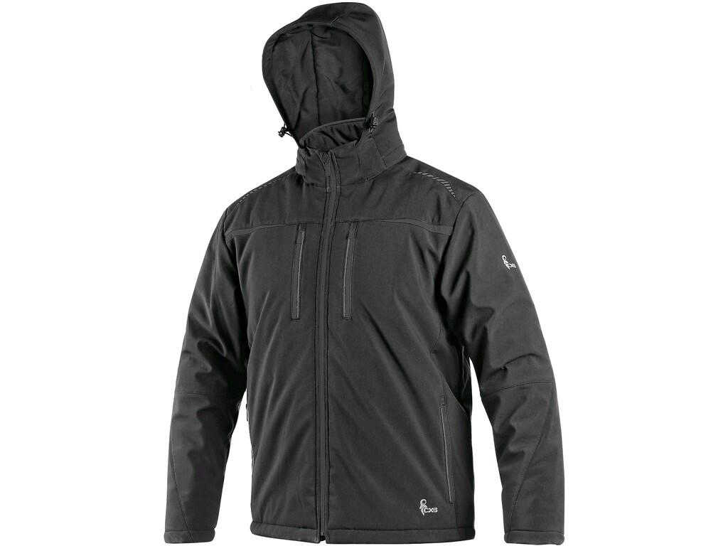 Pánská zateplená softshellová bunda s odepínací kapucí, odolná proti vodě a větru, zapínaní na zip, větrání v podpaží, náprsní kapsy na zip, v pravé kapse odnímatelné pouzdro na ID kartu, boční kapsy na zip, vnitřní kapsy, vnitřní manžety v rukávech, stahování v dolním okraji, reflexní doplňky, TPU membrána, vnitřní otvor na zip pro aplikaci výšivky. Odolnost materiálu proti průniku vody 8 000 mm mimo oblast švů, paropropustnost 3 000 g/m2/24h.