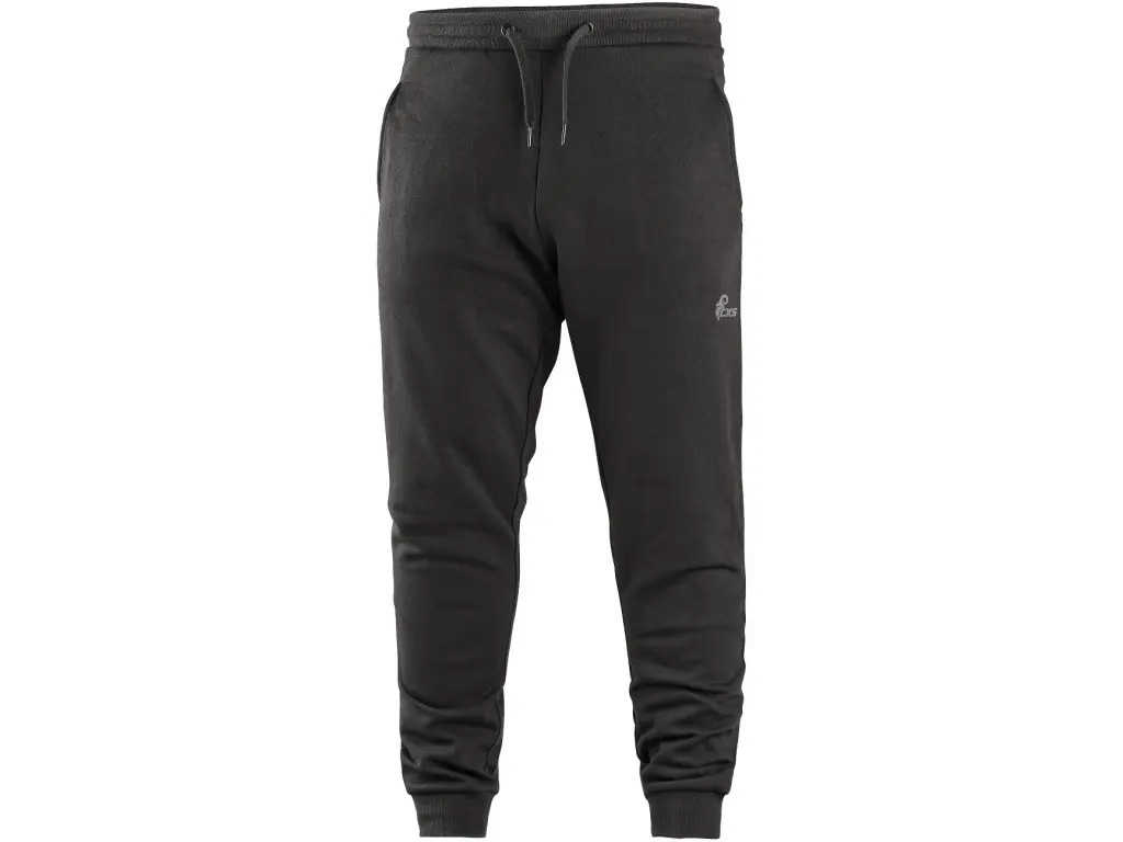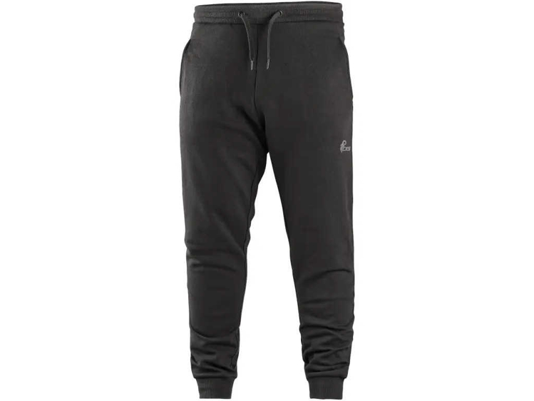 Pánské tepláky, pas a nohavice z žebrové pruženky, 2 přední kapsy na zip, vnitřní strana z fleecu.