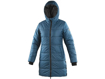 Dámský zateplený kabát s kapucí a bočním rozparkem na druky. Boční kapsy na zip, rukávy ukončeny pružnou manžetou, černé reflexní doplňky na kapuci, rozparku a podél hlavního zipu, vnitřní kapsa na zip.